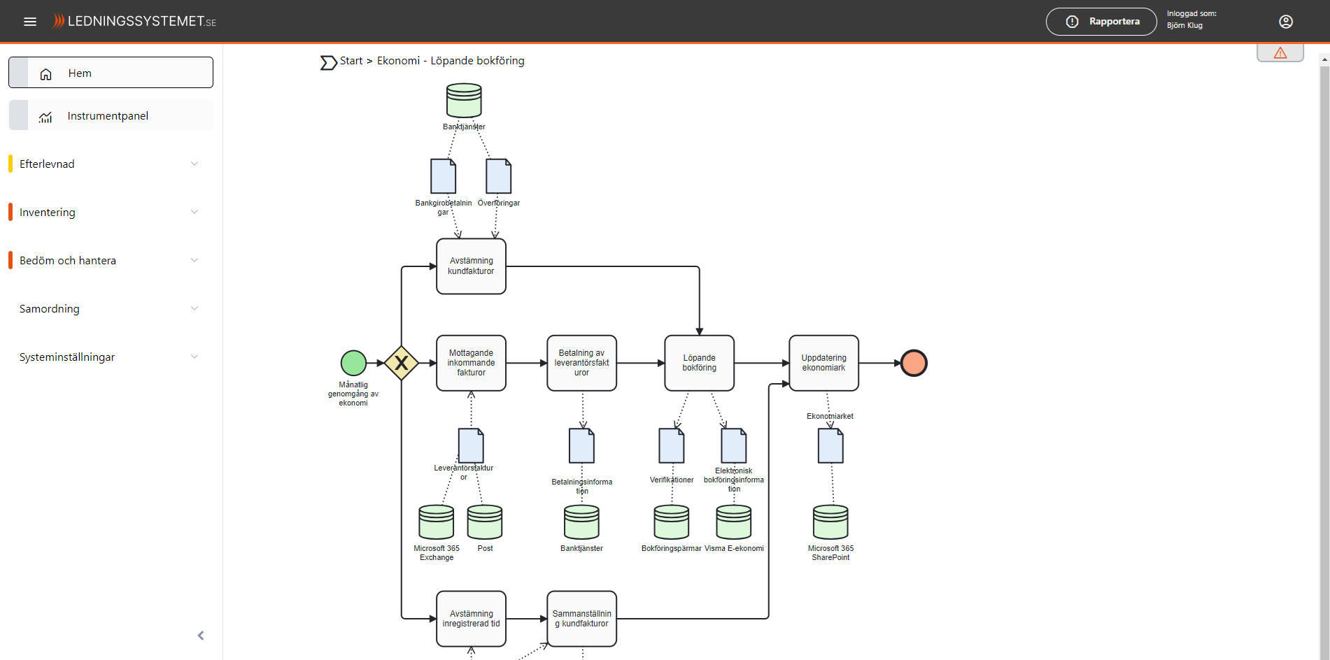 The tool can be provided as a cloud service (SaaS) or as a licensed product that the business sets up in its own operating environment, regardless of whether that operating environment is in the cloud, at the IT operations provider or in its own server room in the office. In short, there are opportunities for everyone to use ledningssystemet.se and the business does not have to feel bound by the operating form or other dependencies as is the case when a management support system is based entirely on, for example, Sharepoint, Workspace, Jira or Notion.