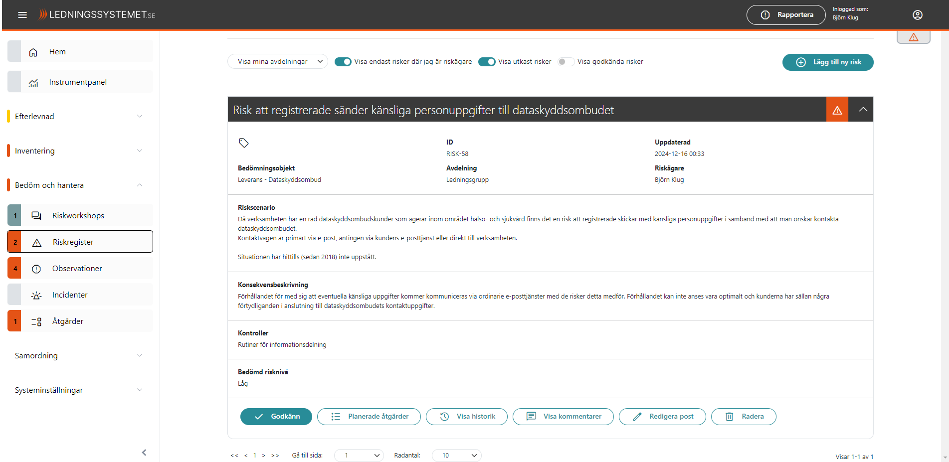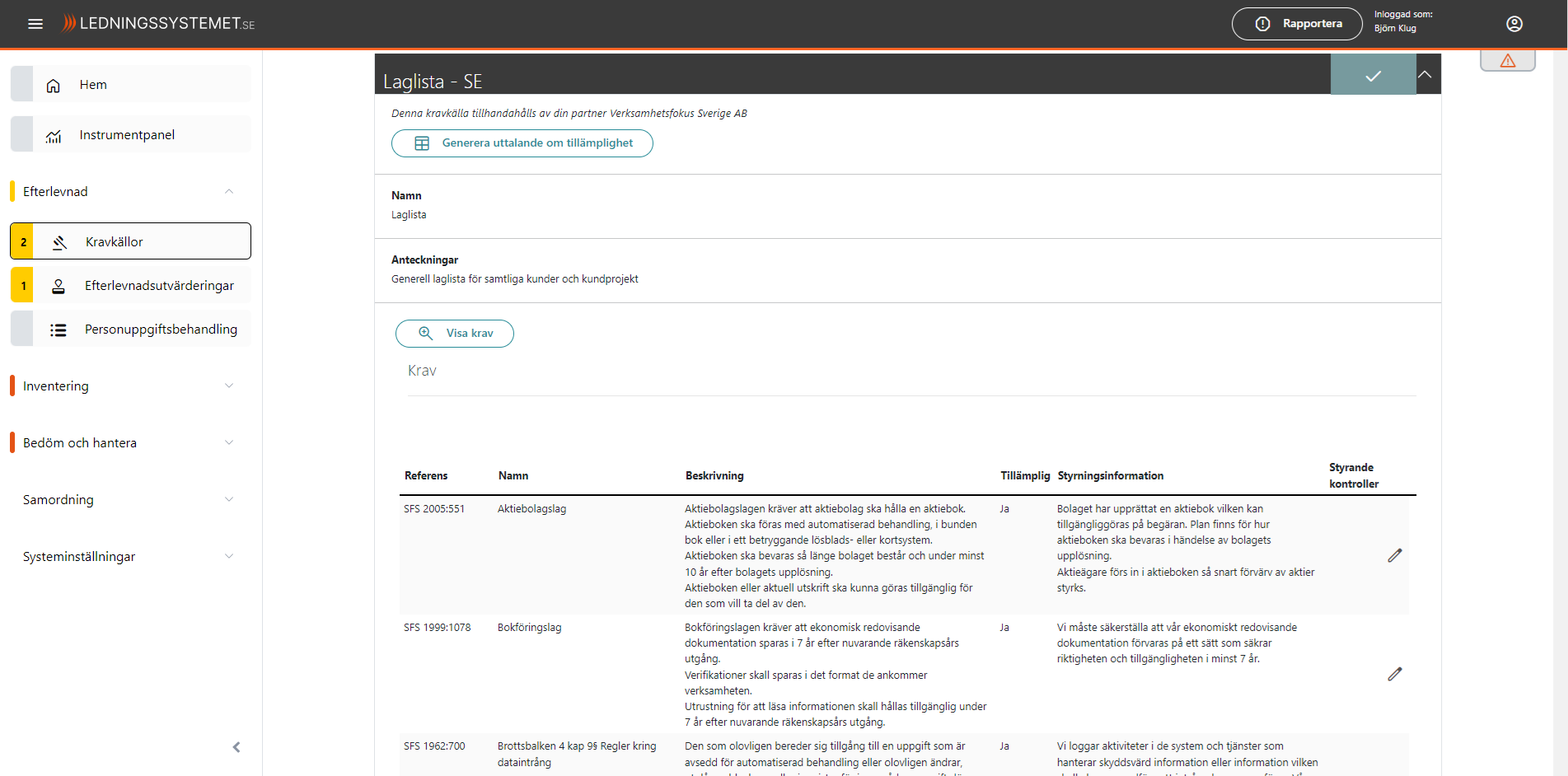 Ledningssystemet.se gives companies in general (small, medium or large companies) access to a relevant tool for developing and managing their management system over time and involving employees in that work without it becoming cost-driving as the business expands.