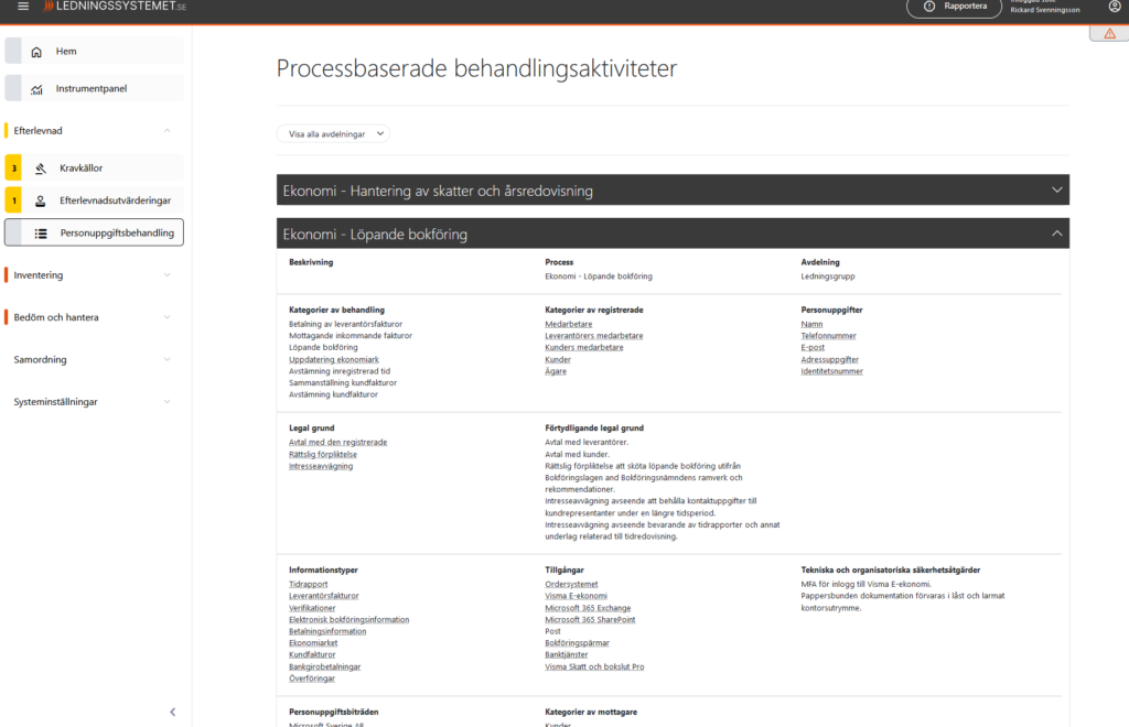 Through the process-based and automatically generated personal data processing register, the organization can easily create information for data subjects, for example in the form of a Privacy Policy, which is accurate and meets the requirements of the Data Protection Regulation.
