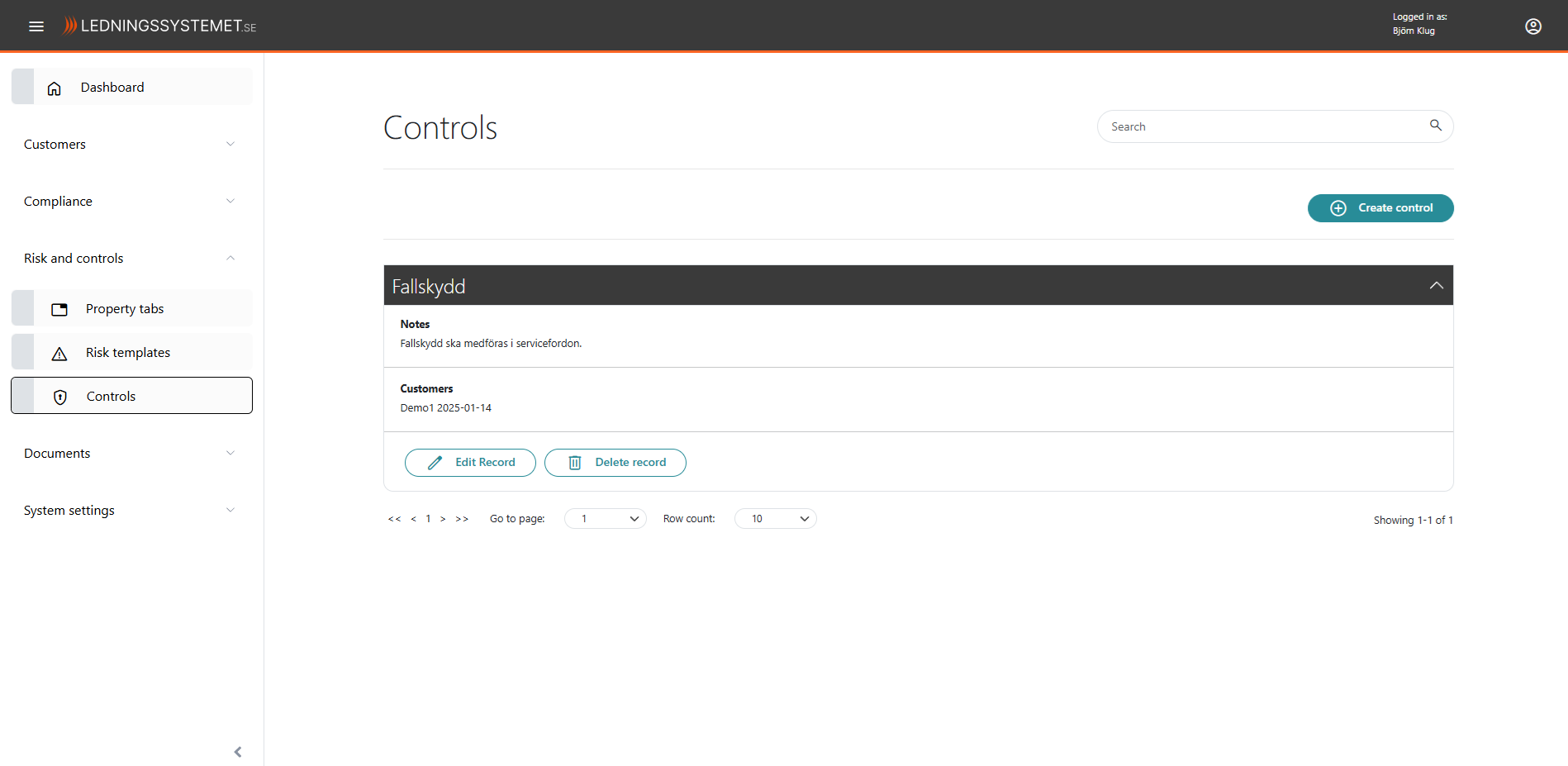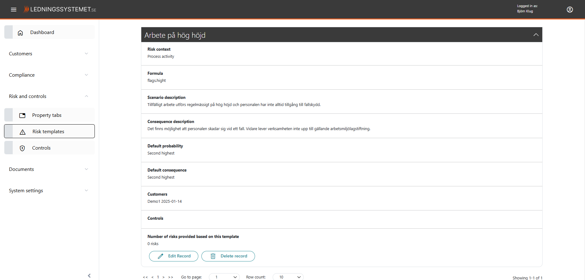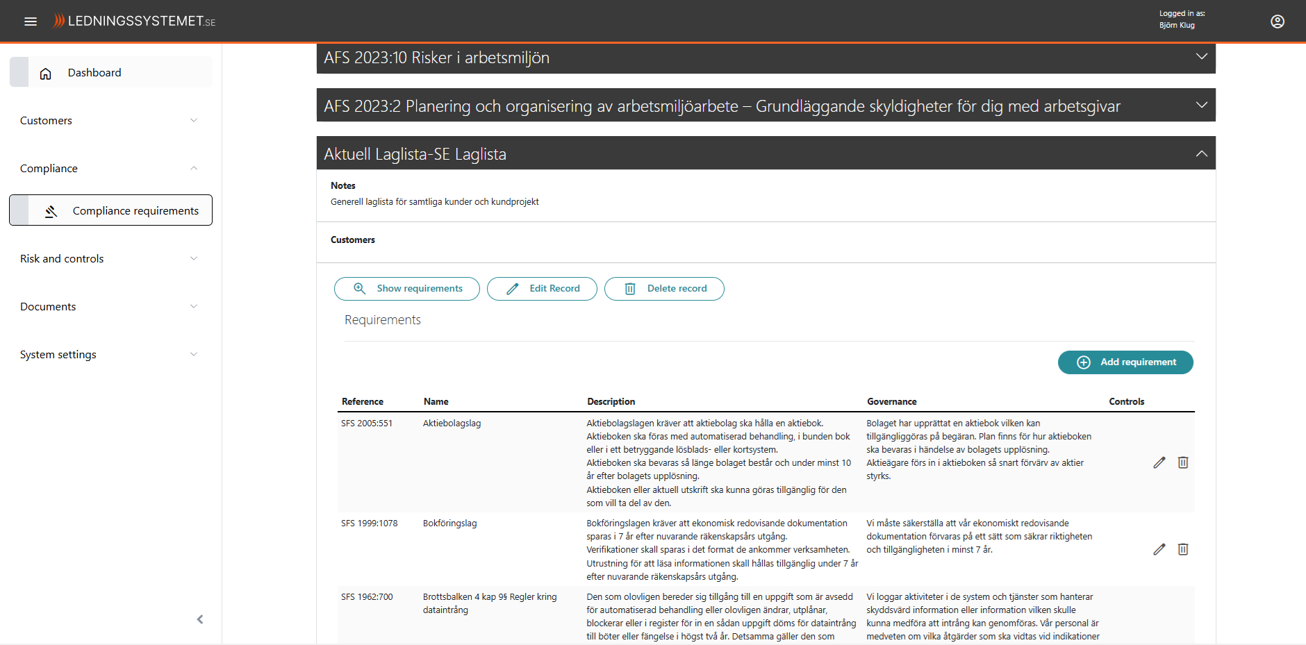 For consultants, Ledningssystemet.se is available as a partner portal. Through the partner portal, a consultant can help their customers set up requirement sources, provide properties for object categories, provide risk templates and provide suggestions for relevant and commonly used controls for the consultant’s customers.