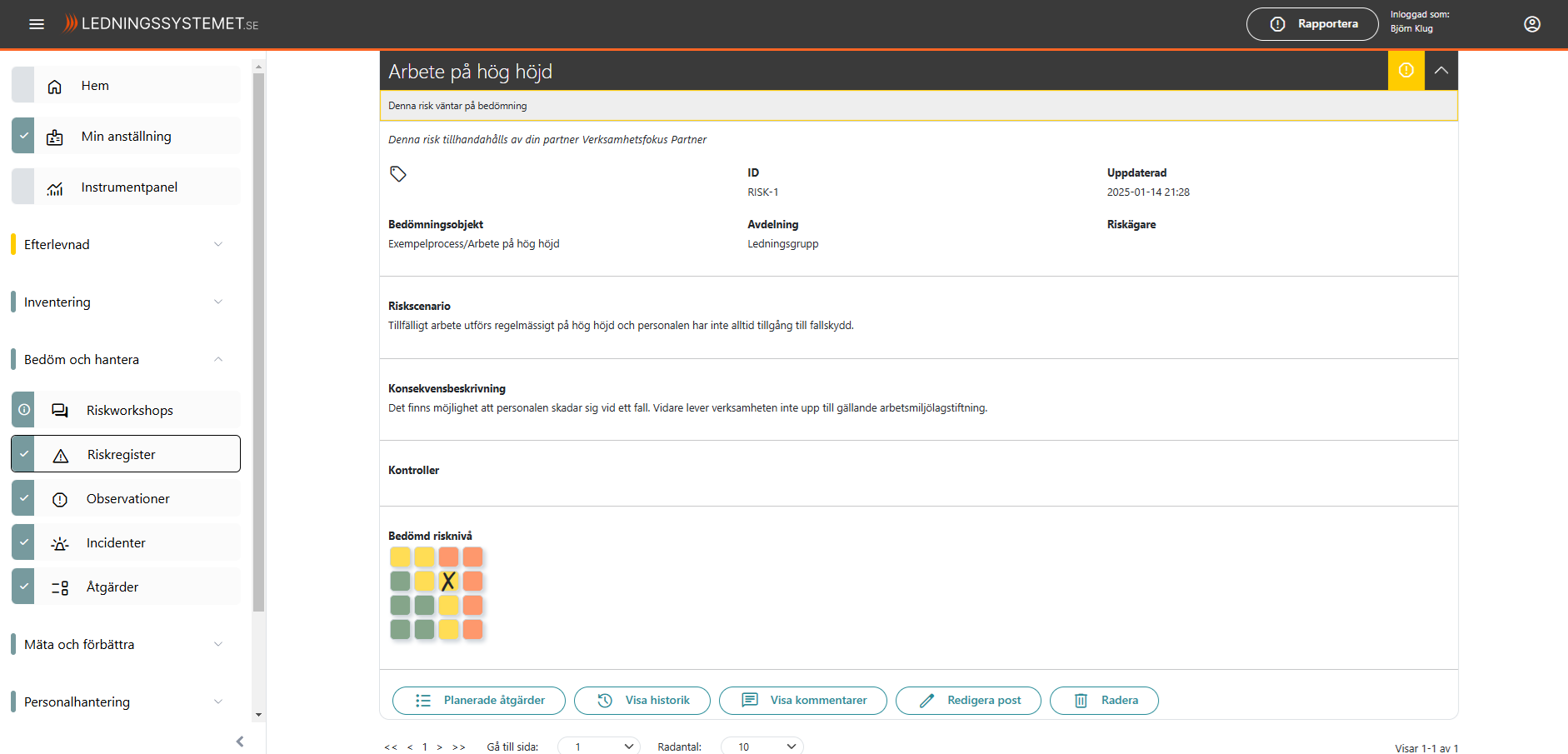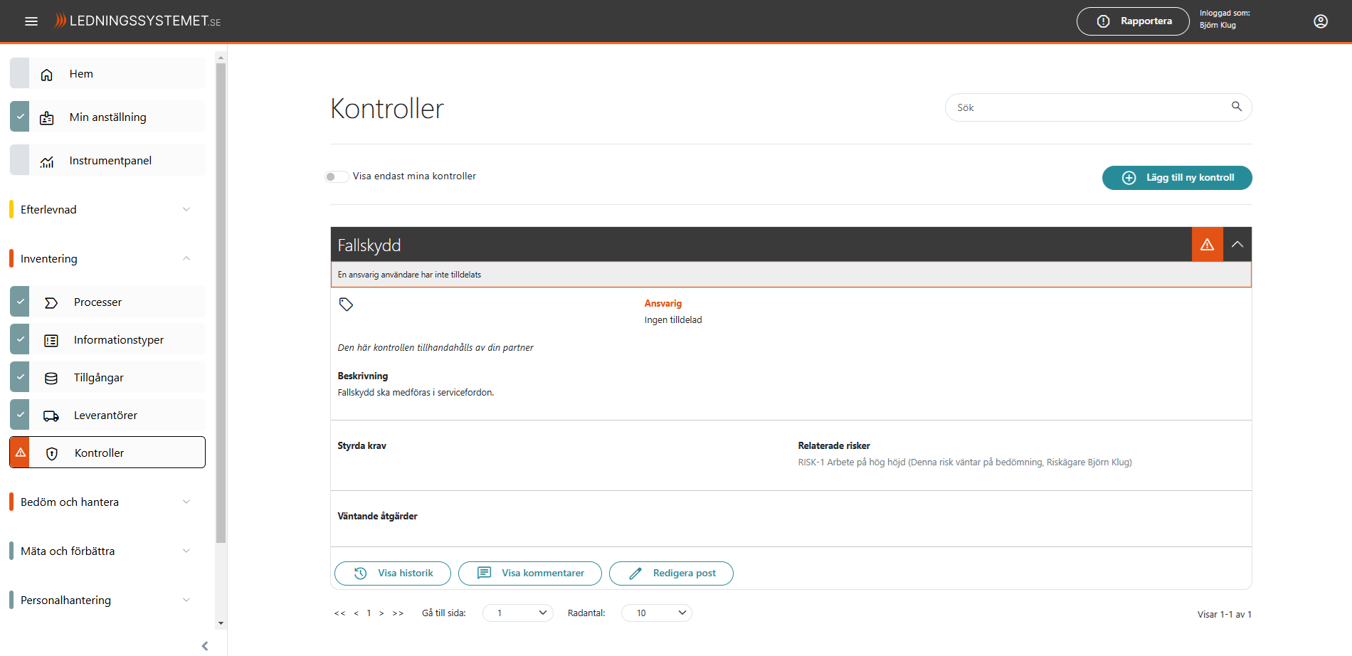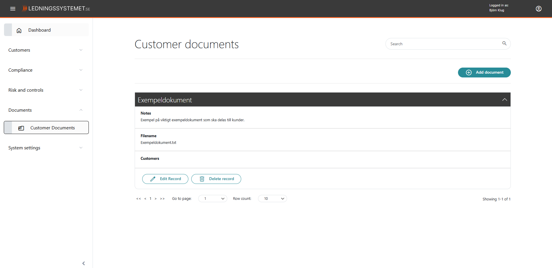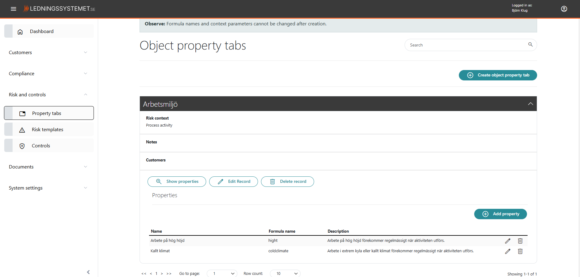 For consultants, Ledningssystemet.se is available as a partner portal. Through the partner portal, a consultant can help their customers set up requirement sources, provide properties for object categories, provide risk templates and provide suggestions for relevant and commonly used controls for the consultant’s customers.