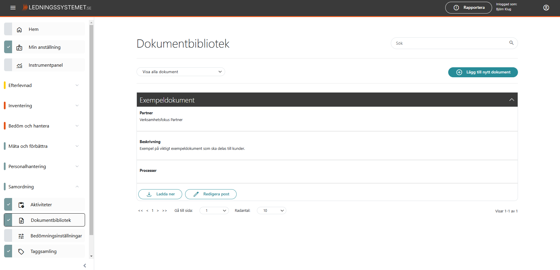 The partner portal is provided to those who wish to use Ledningssystemet.se for their customers and not only assist with consulting support and work in the customer’s instance, but also want to help their customers over time and through a more comprehensive approach. In short, we have identified that consultants quite often identify a need of a customer that is likely to be a need of several customers in the future, such as an updated industry-specific list of mandatory requirements.